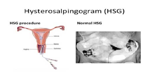 An HSG involves inserting a dye or saline into the cervix through X- ray or ultrasound in order to check the blockage of the fallopian tubes.